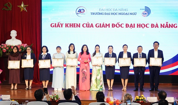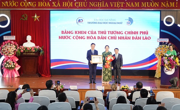 Trong khuôn khổ buổi lễ, Nhà trường cũng vinh dự đón nhận nhiều danh hiệu và bằng khen cao quý của Thủ tướng Chính phủ Lào, Thủ tướng Chính phủ Việt Nam, Bộ Giáo dục & Đào tạo và Đại học Đà Nẵng dành cho các tập thể, cá nhân xuất sắc, minh chứng cho vị thế ngày càng vững mạnh của Trường Đại học Ngoại ngữ trong hệ thống giáo dục đại học Việt Nam.