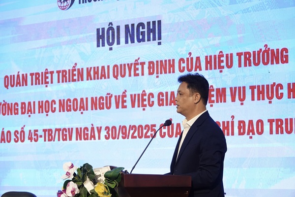 Hội nghị quán triệt triển khai Quyết định của Hiệu trưởng Trường Đại học Ngoại ngữ về việc giao nhiệm vụ thực hiện Thông báo số 45-TB/TGV của Ban Chỉ đạo Trung ương