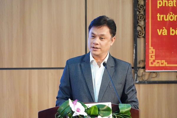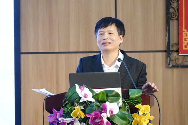 Đồng chí Ngô Văn Hà - Trưởng Khoa Lý luận chính trị, Trường Đại học Kinh tế, Đại học Đà Nẵng trình bày báo cáo tại Hội nghị