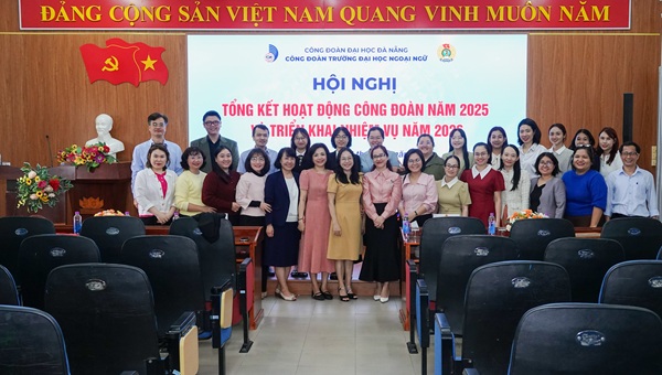 Sáng ngày 29/01/2026, tại phòng C303, Trường Đại học Ngoại ngữ, Đại học Đà Nẵng đã tổ chức Hội nghị Tổng kết hoạt động Công đoàn năm 2025 và triển khai nhiệm vụ năm học 2026. Hội nghị diễn ra trong không khí trang trọng, sôi nổi với sự tham dự của đại diện Ban Thường vụ Công đoàn Đại học Đà Nẵng, lãnh đạo Nhà trường cùng đông đảo cán bộ, đoàn viên công đoàn.