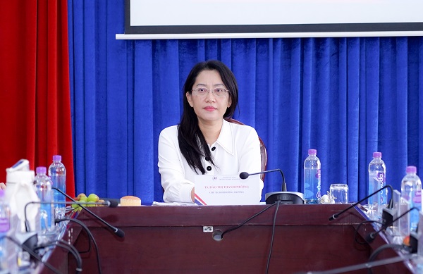 Phát biểu tại phiên họp, TS. Đào Thị Thanh Phượng - Chủ tịch Hội đồng Trường ghi nhận và đánh giá cao sự chuẩn bị kỹ lưỡng, tinh thần làm việc nghiêm túc và những đóng góp thiết thực từ các thành viên, nhấn mạnh một số định hướng ưu tiên nhằm nâng cao hiệu quả hoạt động của Hội đồng, hướng đến mục tiêu nâng cao chất lượng đào tạo, nghiên cứu khoa học và đóng góp cho cộng đồng.