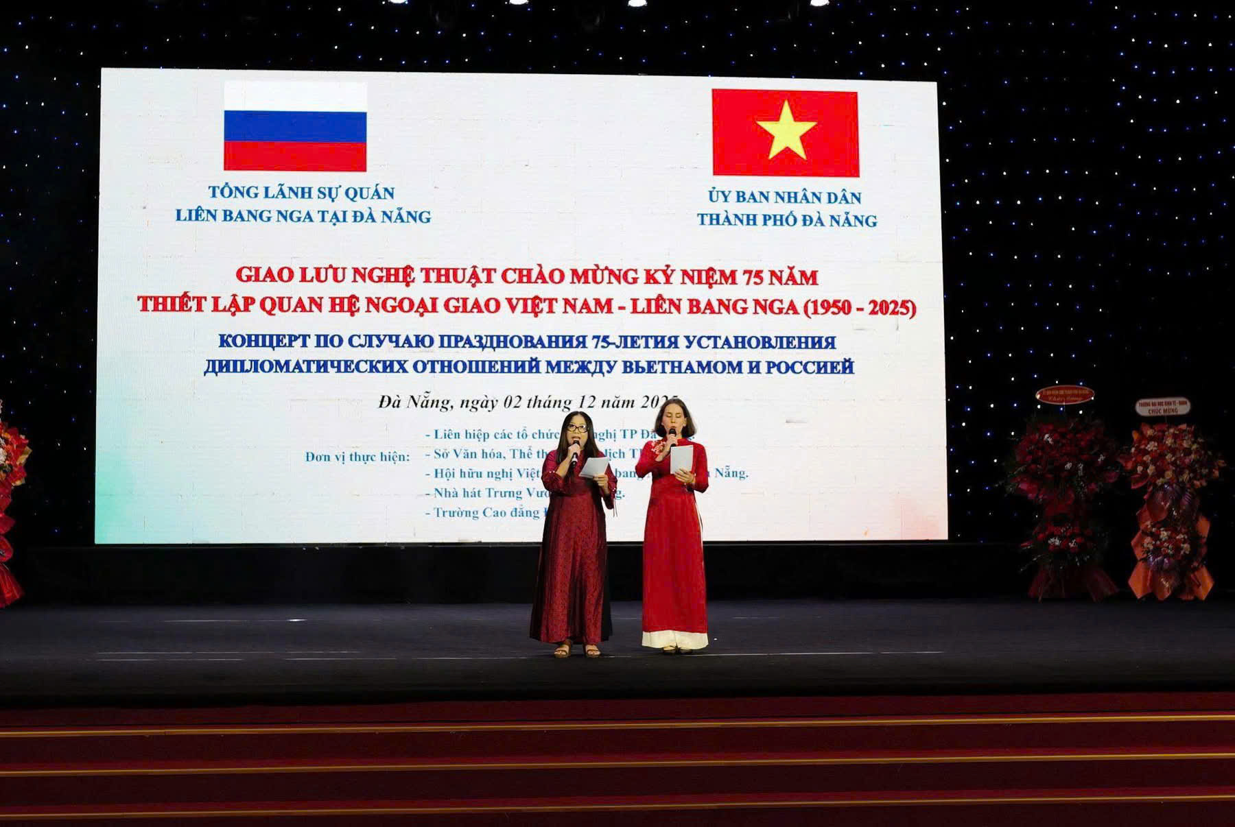 Tikhonova Anastasiia – lưu học sinh lớp Nga Hiệp định, Trường Đại học Ngoại ngữ, Đại học Đà Nẵng đã xuất sắc đảm nhận vai trò MC chương trình “Giao lưu nghệ thuật chào mừng kỷ niệm 75 năm thiết lập quan hệ ngoại giao Việt Nam - Liên bang Nga (1950-2025)” tại Nhà hát Trưng Vương tối ngày 02/12/2025, đồng hành dẫn dắt cùng phóng viên của Đài Truyền hình Việt Nam (VTV8).
