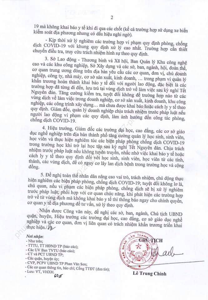 Thông báo về việc tiếp tục xử lý nghiêm các trường hợp vi phạm các biện pháp phòng, chống dịch Covid-19 trên địa bàn thành phố