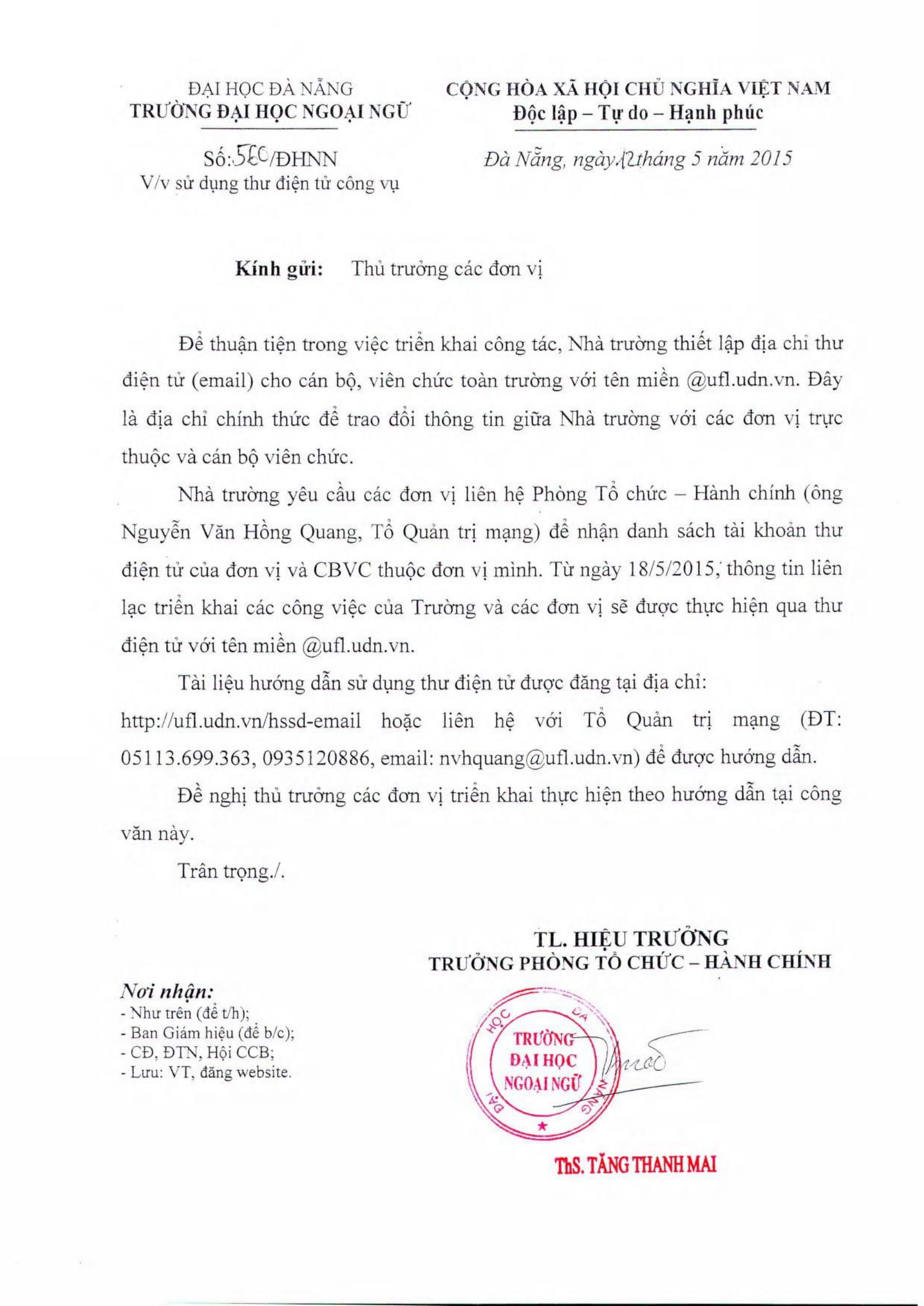 Thông báo về việc triển khai thư điện tử (email @sv.ufl.udn.vn) công vụ cho sinh viên