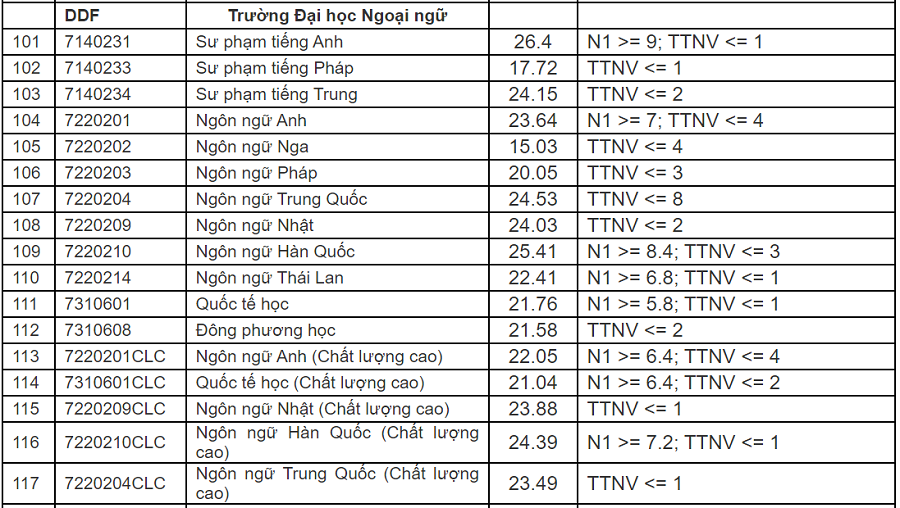 Đại học Đà Nẵng (ĐHĐN) công bố điểm trúng tuyển vào các trường đại học thành viên, đơn vị thuộc và trực thuộc ĐHĐN theo phương thức xét kết quả kỳ thi THPT năm 2020 như sau