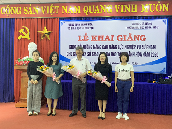 Sáng ngày 19/10/2020, Trường Đại học Ngoại ngữ - Đại học Đà Nẵng phối hợp với Sở Giáo dục & Đào tạo tỉnh Khánh Hòa tổ chức Lễ khai giảng khóa bồi dưỡng nâng cao năng lực ngoại ngữ cho giáo viên tiếng Anh trên địa bàn tỉnh Khánh Hòa trong chương trình thuộc Đề án Ngoại ngữ Quốc gia. Tham dự buổi lễ có ông Lê Đình Thuần - Phó Giám đốc Sở Giáo dục & Đào tạo tỉnh Khánh Hòa; TS. Huỳnh Ngọc Mai Kha - Phó Hiệu trưởng Trường Đại học Ngoại ngữ Đà Nẵng; các giảng viên đến từ Trường Đại học Ngoại ngữ - Đại học Đà Nẵng và 175 giáo viên tiếng Anh đến từ các trường Tiểu học, Trung học Cơ sở, Trung học Phổ thông trên địa bàn tỉnh Khánh Hòa.