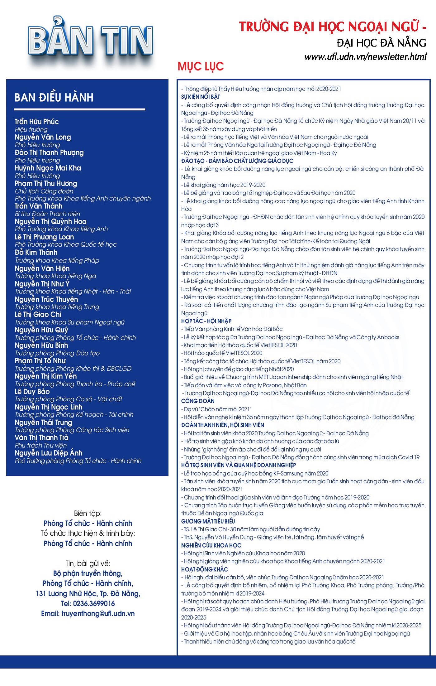 Sáng ngày 18/11/2020, Trường Đại học Ngoại ngữ - Đại học Đà Nẵng công bố quyết định Hội đồng trường và Chủ tịch Hội đồng trường Trường Đại học Ngoại ngữ nhiệm kỳ 2020-2025. TS. Đào Thị Thanh Phượng giữ chức Chủ tịch Hội đồng trường.