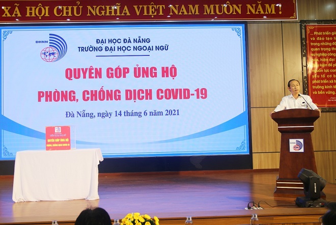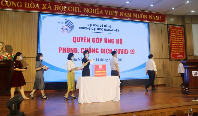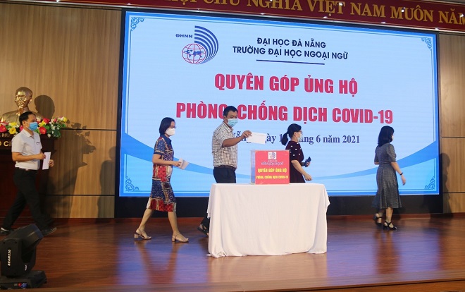 Hưởng ứng lời kêu gọi của Chính phủ, Mặt trận Tổ quốc Việt Nam, Thư kêu gọi của Liên tịch Lãnh đạo Trường Đại học Ngoại ngữ, ĐHĐN, sáng ngày 14/6/2021 Trường Đại học Ngoại ngữ - Đại học Đà Nẵng đã tổ chức Lễ phát động quyên góp ủng hộ công tác phòng, chống dịch COVID-19 năm 2021.