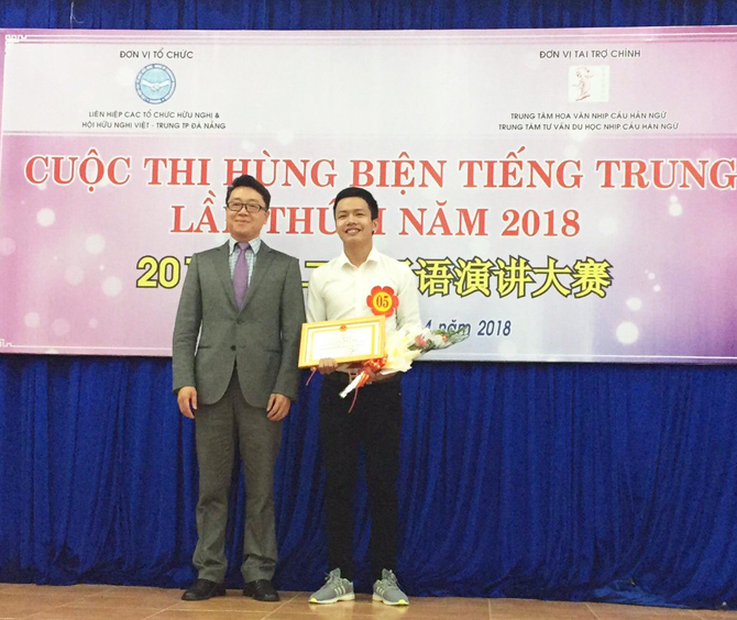 Trao giải Ba cho thí sinh Phạm Đức Tài - Lớp 16TT, Khoa tiếng Trung Trường Đại học Kiến trúc Đà Nẵng