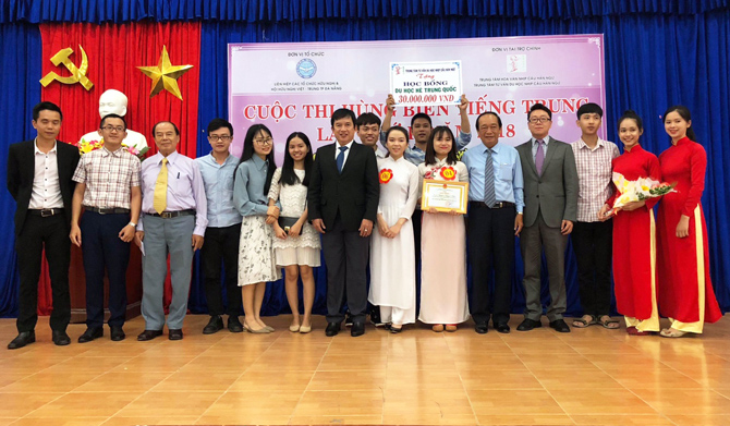 Nhân dịp này, Trung tâm Tư vấn Nhịp cầu Hán ngữ trao 1 suất học bổng du học hè 1 tháng tại Trường Đại học Sư phạm Hoa Nam Quảng Châu Trung Quốc cho thí sinh đạt giải Nhất trị giá 30 triệu đồng và Hội hữu nghị Việt - Trung trao 05 suất học bổng trị giá 1 triệu đồng/01 suất cho các em sinh viên học tiếng Trung trên địa bàn thành phố gia đình khó khăn nhưng luôn phấn đấu trong học tập và tham gia nhiệt tình, năng nổ các hoạt động của Khoa, Trường.