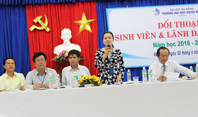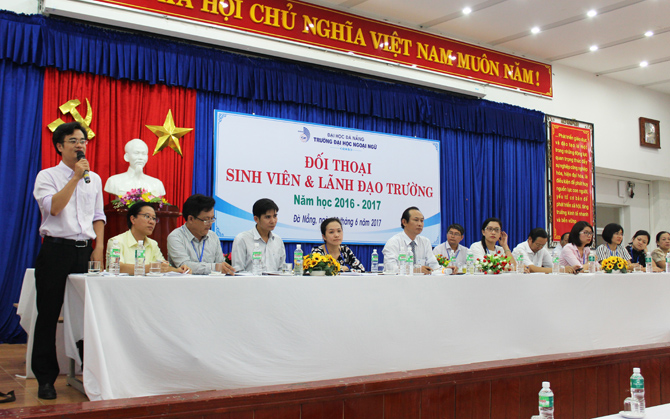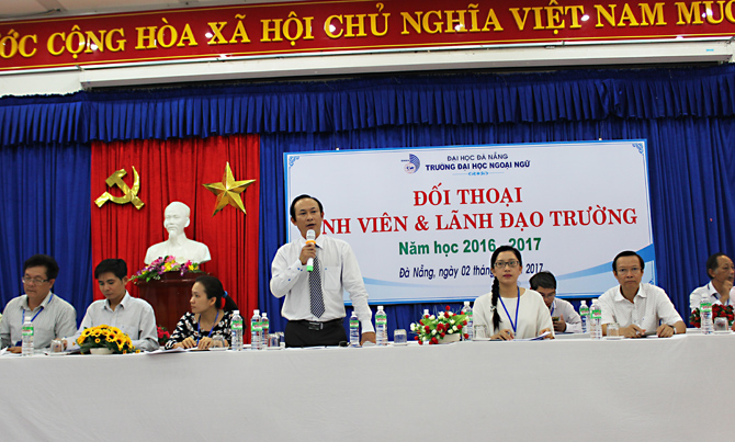 Phát biểu khép lại buổi đối thoại sau gần 3 giờ đồng hồ, TS. Trần Hữu Phúc đánh giá cao và biểu dương tinh thần trách nhiệm của các em sinh viên trong việc chủ động và tích cực tham gia trao đổi, góp ý cho các hoạt động của Nhà trường. Thay mặt lãnh đạo nhà trường, thầy Hiệu trưởng cam kết những ý kiến chính đáng của các em sẽ được quan tâm giải quyết một cách tốt nhất trong điều kiện có thể của Nhà trường. Thầy cũng tin tưởng rằng, với sự nỗ lực không mệt mỏi của toàn thể các thầy cô giáo, cán bộ viên chức, chắc chắn các em sinh viên của Trường Đại học Ngoại ngữ - ĐHĐN sẽ có một môi trường học tập ngày càng tốt hơn, đáp ứng được niềm mong mỏi chính đáng của các em.