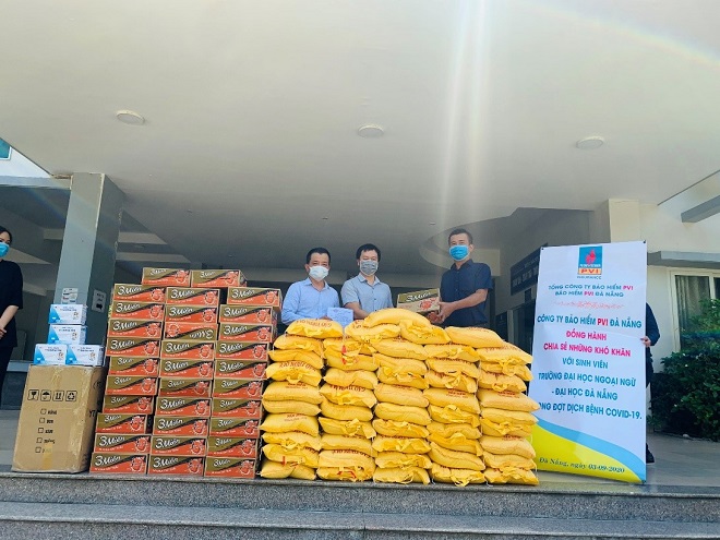 ThS Trần Văn Thành - Bí thư Đoàn Thanh niên, Chủ tịch Hội sinh viên Nhà trường đại diện nhận quà hỗ trợ từ Công ty Bảo hiểm PVI Đà Nẵng