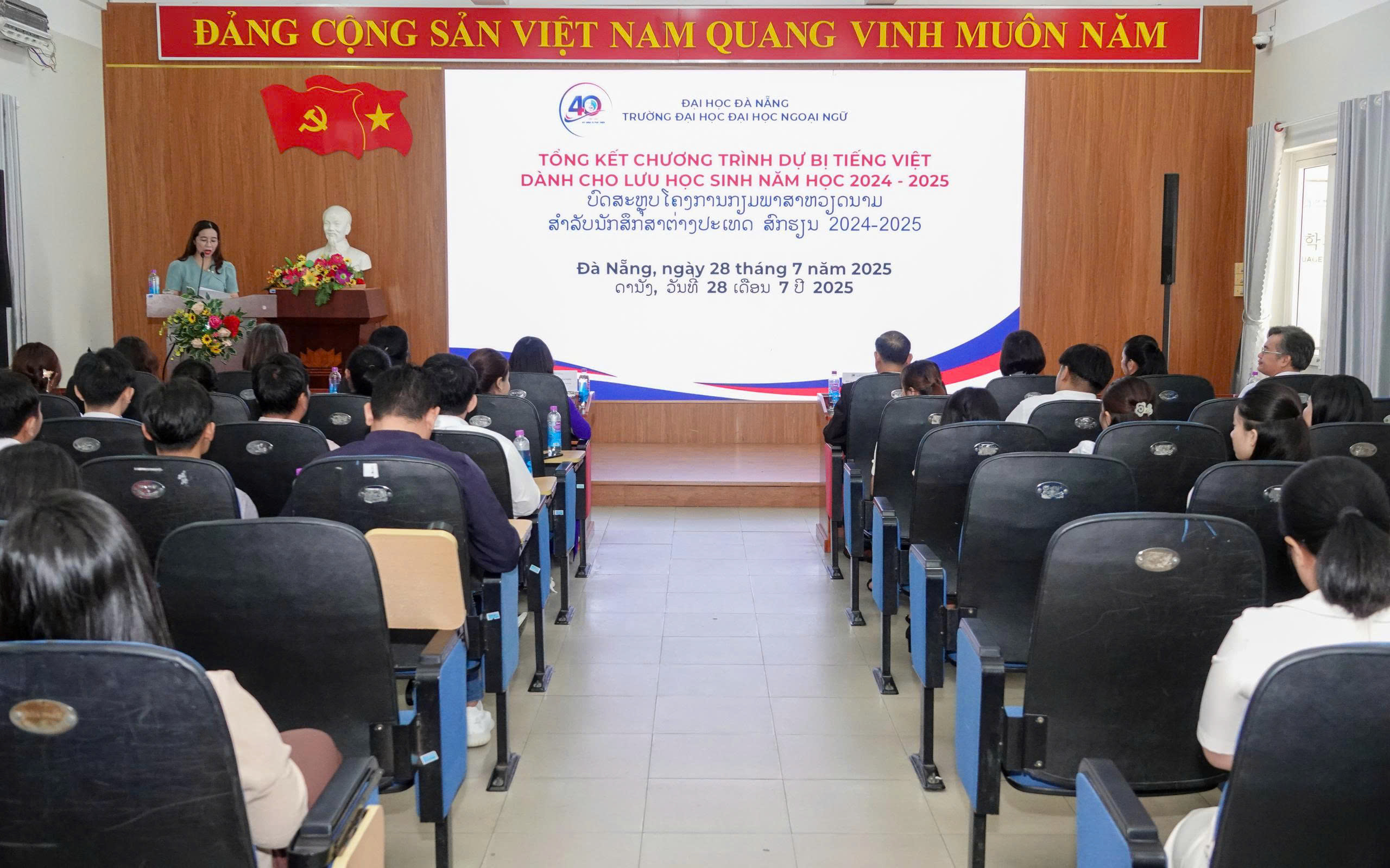 Ngày 28/7/2025, Trường Đại học Ngoại ngữ, Đại học Đà Nẵng đã tổ chức Lễ Tổng kết Chương trình Dự bị tiếng Việt dành cho lưu học sinh Lào năm học 2024 - 2025. Buổi lễ là dịp ghi nhận những nỗ lực học tập của các em, đồng thời khẳng định mối quan hệ hữu nghị bền vững giữa Việt Nam và Lào trong lĩnh vực giáo dục.