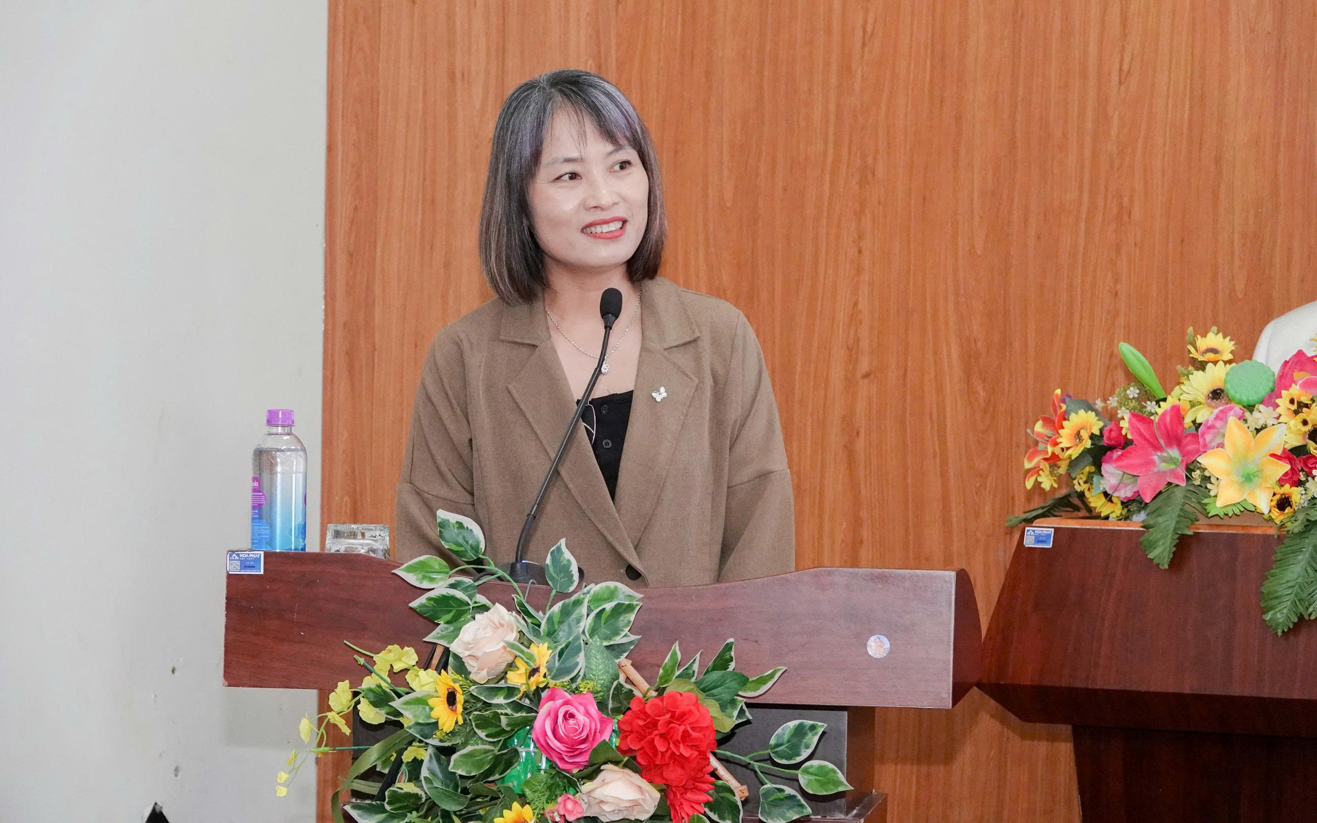 ThS. Trần Thị Ngọc Hoa, Phó Trưởng khoa Khoa Quốc tế học phát biểu tại buổi Lễ