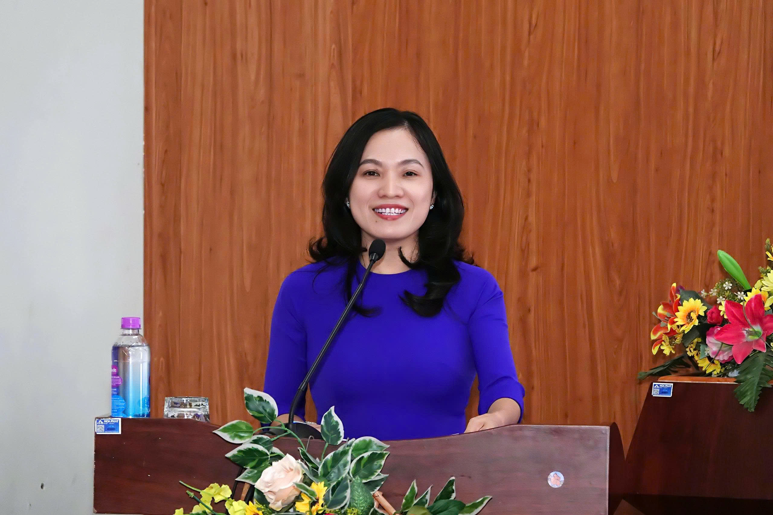 TS. Huỳnh Ngọc Mai Kha, Phó Hiệu trưởng Nhà trường phát biểu tại buổi lễ