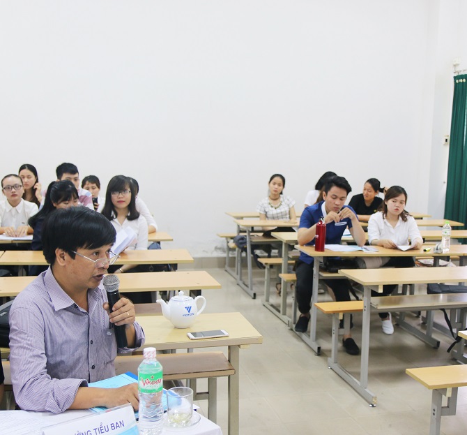 TS. Nguyễn Thị Huỳnh Lộc - Trưởng Phòng Khoa học & Hợp tác Quốc tế báo cáo công tác tổ chức Hội nghị Sinh viên NCKH Trường Đại học Ngoại ngữ, ĐHĐN năm 2017