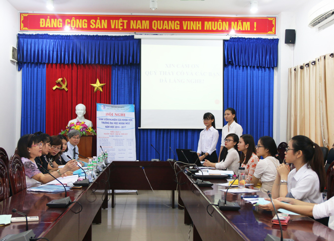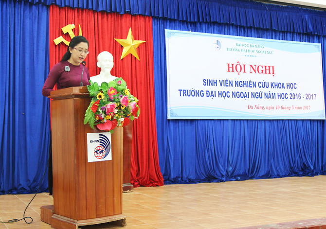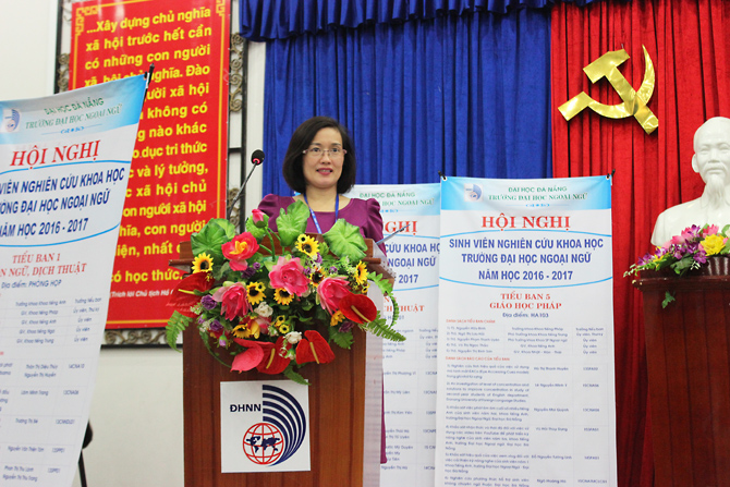 “Hội nghị sinh viên nghiên cứu khoa học năm 2017 thực sự là ngày hội nghiên cứu, sáng tạo của tuổi trẻ; là nơi giao lưu học hỏi, chia sẻ kinh nghiệm học tập, nghiên cứu; là dịp thể hiện năng lực trí tuệ của sinh viên được đào tạo trong một môi trường học thuật chất lượng cao Trường ĐHNN - ĐHĐN. Tại các Hội nghị sinh viên NCKH cấp Đại học Đà Nẵng và cấp Bộ, các công trình NCKH của sinh viên Nhà trường luôn đạt được giải cao, gần đây nhất, năm 2014, công trình NCKH của SV Nhà trường đã đạt giải Nhì tại hội nghị SV NCKH cấp Bộ, năm 2016 đạt giải Ba, giải Khuyến khích. Chúng ta kỳ vọng rằng tiếp nối thành công của Hội nghị sinh viên NCKH lần này, phong trào NCKH trong sinh viên ngày càng phát triển và trong Hội nghị SV NCKH cấp Bộ sắp đến, công trình NCKH của SV Nhà trường dự thi sẽ đạt giải cao, một số sinh viên có bài đăng trên tạp chí quốc tế, góp phần khẳng định học hiệu của Nhà trường và của Đại học Đà Nẵng.” - TS. Đào Thị Thanh Phượng phát biểu thêm.