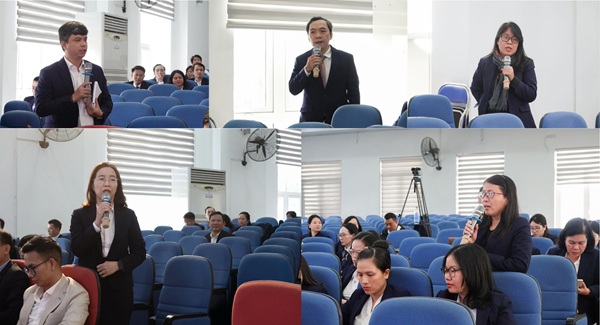 Phần thảo luận tại Hội nghị diễn ra sôi nổi, thẳng thắn và mang tính xây dựng cao, tập trung vào những nội dung thiết thực như tổ chức thời khóa biểu học trực tuyến, ứng dụng phần mềm quản trị, điều kiện cơ sở vật chất, quy trình đánh giá thi đua -khen thưởng. Các ý kiến, kiến nghị của đại biểu được Ban Giám hiệu và lãnh đạo các đơn vị giải trình công khai, tiếp thu nghiêm túc và cam kết điều chỉnh trong năm học mới, thể hiện rõ tinh thần dân chủ, minh bạch trong quản trị đại học.