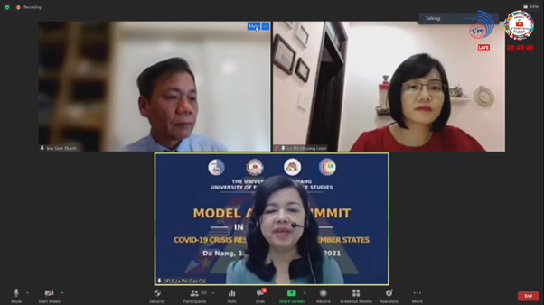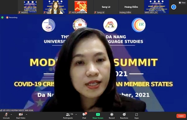 Phát biểu khai mạc chương trình, thay mặt lãnh đạo Nhà trường và Ban Tổ chức, TS. Huỳnh Ngọc Mai Kha - Phó Hiệu trưởng Trường Đại học Ngoại ngữ đã bày tỏ niềm vinh dự khi Trường Đại học Ngoại ngữ - ĐHĐN tổ chức chương trình Mô phỏng Hội nghị Thượng đỉnh ASEAN 2021 tại Đà Nẵng. Qua chương trình, 52 đại biểu tài năng đến từ các tỉnh thành trong cả nước có thể tham gia mô phỏng quá trình ra quyết định trong khuôn khổ các nước thành viên ASEAN.
