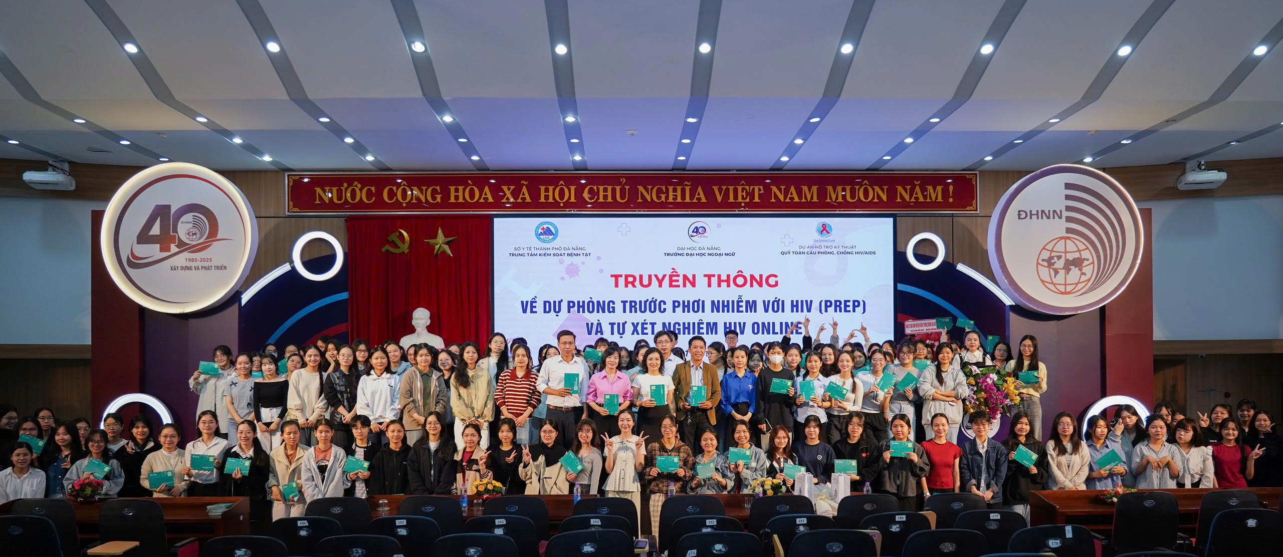 Hơn 200 sinh viên Trường Đại học Ngoại ngữ, Đại học Đà Nẵng đã có một buổi sáng ý nghĩa, giàu năng lượng tích cực khi tham gia chương trình truyền thông về dự phòng trước phơi nhiễm HIV (PrEP) và tự xét nghiệm HIV online. Chương trình do Nhà trường phối hợp với Trung tâm Kiểm soát bệnh tật thành phố Đà Nẵng (CDC Đà Nẵng) tổ chức, không chỉ giúp sinh viên cập nhật kiến thức y tế thiết thực mà còn lan tỏa mạnh mẽ thông điệp sống chủ động, có trách nhiệm với bản thân và cộng đồng, với tinh thần “Hiểu đúng - Hành động đủ - Sống khỏe mạnh”.