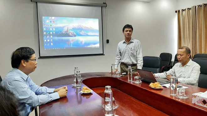 Phần đầu chương trình làm việc TS. Đỗ Kim Thành - Trưởng khoa Khoa Tiếng Pháp trình bày một số vấn đề cụ thể về thành phần Hội đồng tự đánh giá CTĐT, Kế hoạch tự đánh giá. Khoa đã có kế hoạch chi tiết về công tác phân tích tiêu chí thu thập thông tin minh chứng, phân tích xử lý các thông tin và minh chứng thu được để viết phiếu đánh giá tiêu chí, viết báo cáo tự đánh giá.
