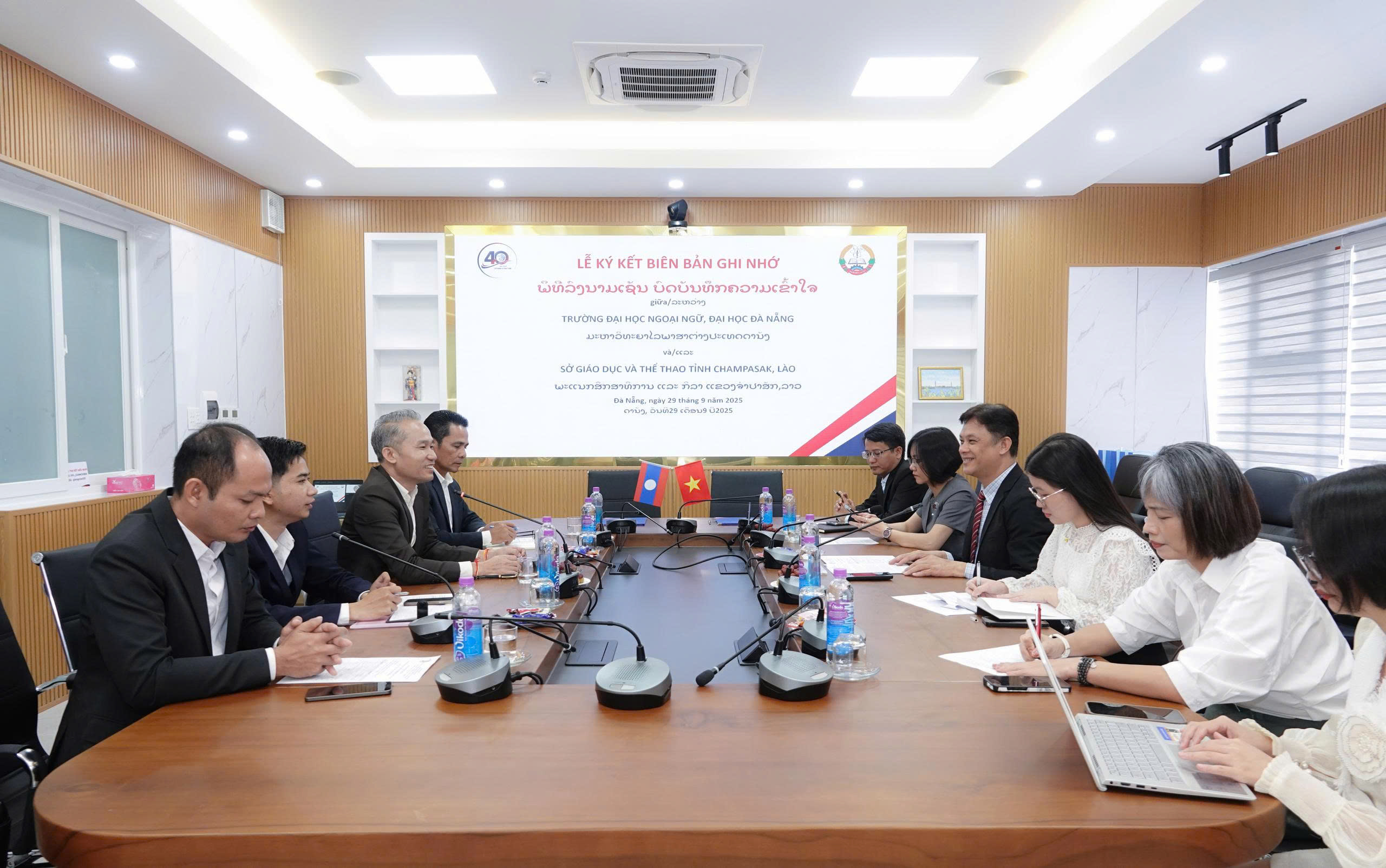 Sáng 29/9/2025, Trường Đại học Ngoại ngữ, Đại học Đà Nẵng tổ chức Lễ ký kết Biên bản ghi nhớ (MOU) hợp tác giáo dục với Sở Giáo dục và Thể thao tỉnh Champasak, Lào. Sự kiện không chỉ khẳng định vị thế và uy tín của Nhà trường trong khu vực mà còn mở ra cơ hội đào tạo nguồn nhân lực chất lượng cao, góp phần thắt chặt tình hữu nghị truyền thống và hợp tác toàn diện giữa Việt Nam - Lào.