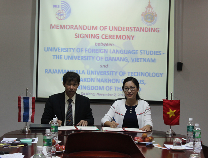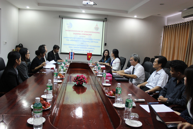 Sáng ngày 02/11/2017, đoàn công tác của Trường Đại Học Kỹ Thuật Rajamangala Isan, Thái Lan đã có các buổi làm việc và ký kết biên bản hợp tác với Trường Đại học Ngoại ngữ - Đại học Đà Nẵng. Tiếp đón đoàn có TS. Đào Thị Thanh Phượng - Phó Hiệu trưởng cùng lãnh đạo Khoa tiếng Anh, Khoa Sư phạm Ngoại ngữ, Phòng Công tác Sinh viên, và Phòng Đào tạo Trường Đại học Ngoại ngữ - Đại học Đà Nẵng.