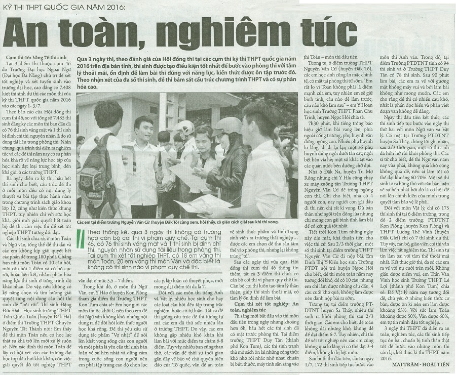 Kỳ thi THPT Quốc Gia 2016: An toàn, nghiêm túc.