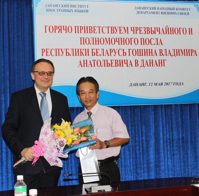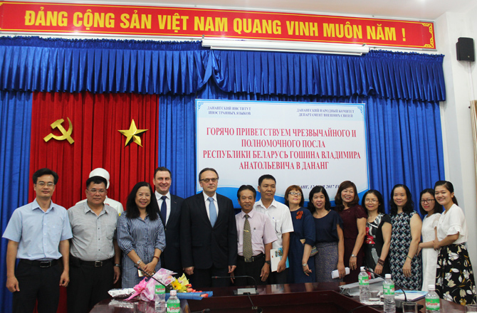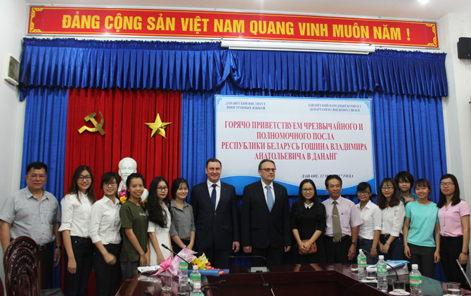Ngày 12/5/2017, Trường Đại học ngoại ngữ - Đại học Đà Nẵng có buổi tiếp đón và làm việc với Đoàn Đại sứ quán Cộng hòa Belarus do ngài Vladimir Anatolievich Goshin, Đại sứ Đặc mệnh toàn quyền Cộng hòa Belarus tại Việt Nam dẫn đầu. Tiếp đón đoàn có PGS.TS. Dương Quốc Cường - Phó Hiệu trưởng, các giảng viên, sinh viên Khoa tiếng Nga, lãnh đạo các Khoa, Phòng Trường Đại học Ngoại ngữ - Đại học Đà Nẵng.