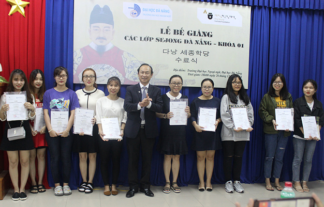 Tối ngày 26/12/2018, Trường Đại học Ngoại ngữ - Đại học Đà Nãng đã tổ chức Lễ bế giảng các lớp tiếng Hàn dự án Sejong Đà Nẵng. Đây là kết quả của chương trình hợp tác giữa Trường Đại học Ngoại ngữ - Đại học Đà Nẵng và Quỹ Sejong Hàn Quốc nhằm tạo cơ hội để giảng viên, sinh viên tìm hiểu, nghiên cứu nâng cao năng lực ngôn ngữ, văn hóa Hàn Quốc.