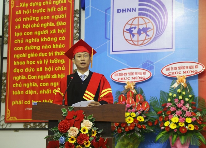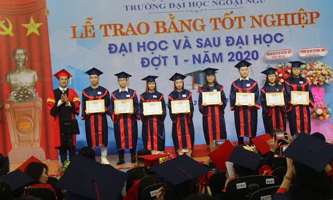 Tại lễ phát bằng, PGS. TS. Trần Hữu Phúc đã báo cáo tổng kết và có những chia sẻ: “Sau quãng thời gian học tập và nghiên cứu, với sự giảng dạy, hướng dẫn tận tâm của Quý thầy cô, và sự phấn đấu không ngừng của các học viên cao học, các em sinh viên, trong đợt tốt nghiệp hệ chính quy đợt I/2020 này có 38 học viên cao học được cấp bằng thạc sĩ và 813 sinh viên của 08 Khoa: tiếng Anh, tiếng Anh chuyên ngành, tiếng Nga, tiếng Pháp, tiếng Trung, tiếng Nhật- Hàn -Thái, Khoa Quốc tế học và Sư phạm Ngoại ngữ, thuộc 20 chuyên ngành đào tạo được công nhận tốt nghiệp và cấp bằng. Trong đó khóa 2016 (xuất sắc 28, giỏi 189, khá 453); các khóa 2015, 2014, 2013, 2012 (xuất sắc 01, giỏi 14, khá 73)."
