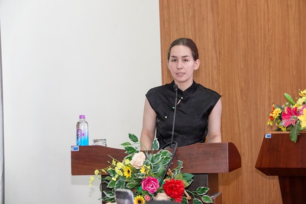 Phát biểu tại buổi lễ, TS. Huỳnh Ngọc Mai Kha - Phó Hiệu trưởng Nhà trường gửi lời chúc mừng nồng nhiệt đến các lưu học sinh, đồng thời bày tỏ niềm vui khi được chào đón các em đến học tập và trải nghiệm tại ngôi trường giàu truyền thống. “Chào mừng các em đến với Trường Đại học Ngoại ngữ, Đại học Đà Nẵng, nơi hội tụ tri thức, văn hóa và tình hữu nghị quốc tế. Thời gian học tập tại Việt Nam sẽ là cơ hội quý báu để các em không chỉ trau dồi tiếng Việt, tích lũy kiến thức, kỹ năng chuyên môn mà còn khám phá đời sống, con người và văn hóa Việt Nam,” TS. Mai Kha chia sẻ.