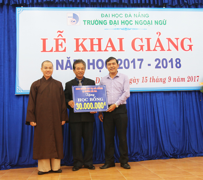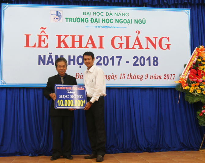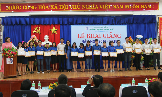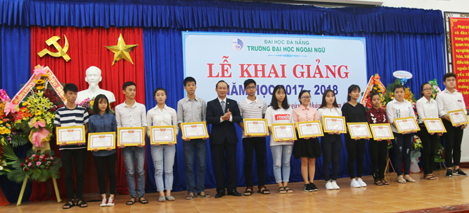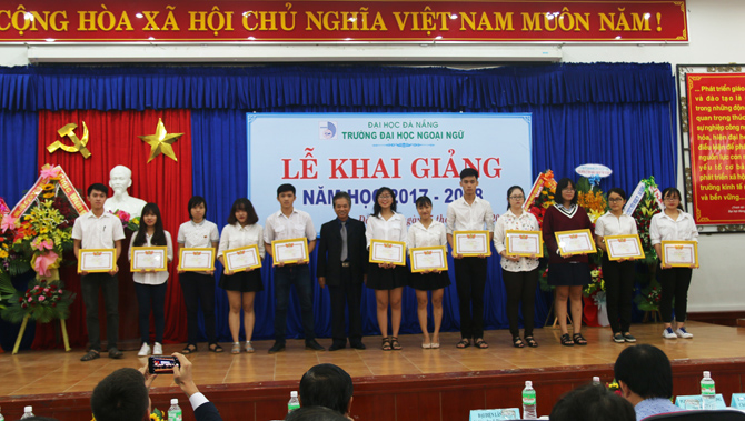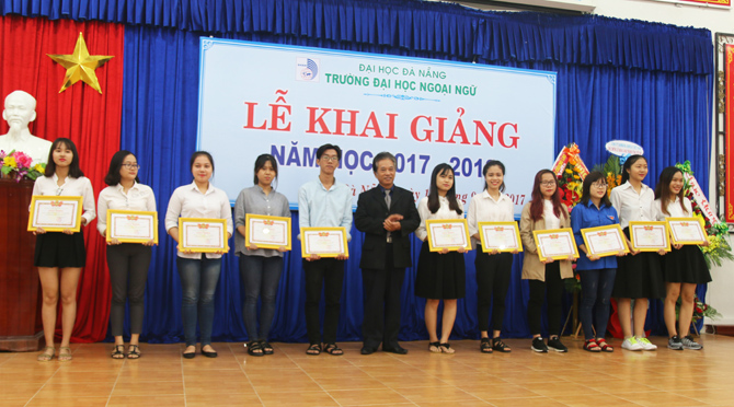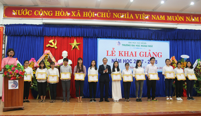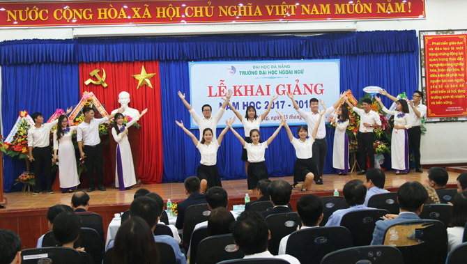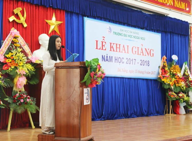 “Năm học 2017-2018 là năm học bản lề, thực hiện thắng lợi Nghị quyết Đại hội Đảng bộ Đại học Đà Nẵng và Đại hội Đảng bộ Trường Đại học Ngoại ngữ nhiệm kỳ 2015 - 2020, đây cũng là năm đầu tiên thực hiện một chu kỳ mới sau khi đã hoàn thành kiểm định và công nhận đạt chuẩn chất lượng giáo dục. Với thương hiệu của Đại học Đà Nẵng trong kỳ tuyển sinh vừa qua, số sinh viên trúng tuyển nhập học vào trường là 1.929 đạt tỷ lệ 100% và 05 Lưu học sinh Lào. Điều này thể hiện sức hút của Trường Đại học Ngoại ngữ cũng như của Đại học Đà Nẵng.” - Đó là phát biểu của PGS.TS. Ngô Văn Dưỡng - Phó Giám đốc Đại học Đà Nẵng tại Lễ khai giảng năm học 2017-2018 diễn ra vào sáng ngày 15/9/2017 tại Trường Đại học Ngoại ngữ - Đại học Đà Nẵng.