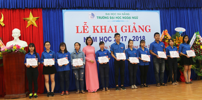 Để ghi nhận thành tích của sinh viên trong năm học 2017-2018, Giám đốc Đại học Đà Nẵng, Hiệu trưởng Trường Đại học Ngoại ngữ - Đại học Đà Nẵng, đã khen thưởng cho các sinh viên đạt điểm tuyển sinh thủ khoa toàn trường, thủ khoa các chuyên ngành đào tạo, sinh viên tiêu biểu, lớp trưởng và cán bộ Đoàn xuất sắc. Các tổ chức, cơ quan, doanh nghiệp cũng trao học bổng đến sinh viên có hoàn cảnh khó khăn, vươn lên trong học tập.