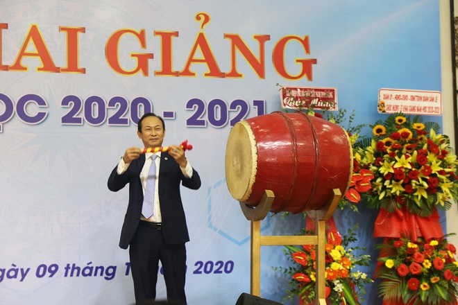 PGS. TS. Trần Hữu Phúc - Hiệu trưởng Nhà trường đánh trống khai giảng năm học mới