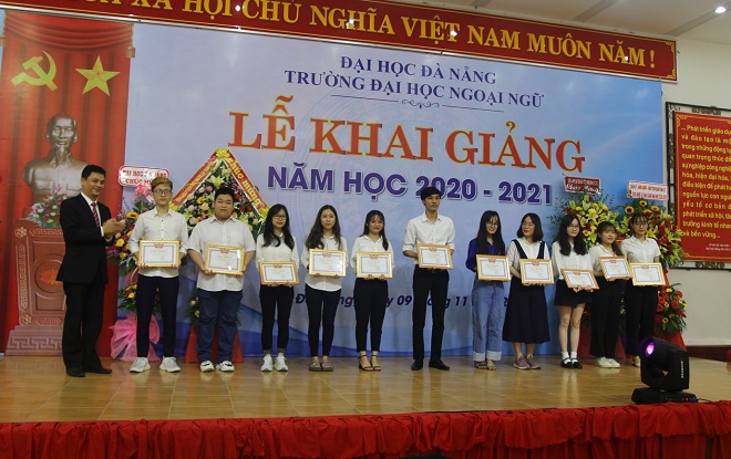 Để ghi nhận thành tích của sinh viên trong năm học 2019-2020, Giám đốc Đại học Đà Nẵng, Hiệu trưởng Trường Đại học Ngoại ngữ - Đại học Đà Nẵng, đã khen thưởng cho các sinh viên đạt điểm tuyển sinh thủ khoa toàn trường, thủ khoa các chuyên ngành đào tạo, sinh viên tiêu biểu, lớp trưởng và cán bộ Đoàn xuất sắc. Các tổ chức, cơ quan, doanh nghiệp cũng trao học bổng đến sinh viên có hoàn cảnh khó khăn, vươn lên trong học tập, Các tổ chức, cơ quan, doanh nghiệp cũng trao học bổng cho quỹ học bổng hỗ trợ sinh viên Trường Đại học Ngoại Ngữ - Đại học Đà Nẵng với tổng số tiền là 9500 USD và 174 triệu đồng đến sinh viên có hoàn cảnh khó khăn, vươn lên trong học tập cũng như các sinh viên có hoàn cảnh gia đình gặp khó khăn do ảnh hưởng của dịch bệnh Covid-19 và của thiên tai bão lụt.