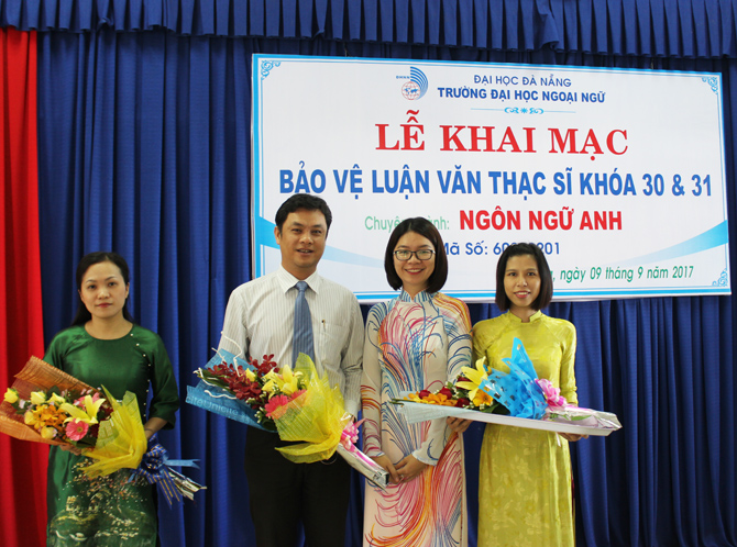 Thực hiện kế hoạch đào tạo năm học 2017-2018, sáng ngày 09/9/2017, Trường Đại học Ngoại ngữ - Đại học Đà Nẵng đã long trọng tổ chức Lễ khai mạc bảo vệ luận văn thạc sĩ chuyên ngành Ngôn ngữ Anh cho 20 học viên cao học khóa 30 và 31.