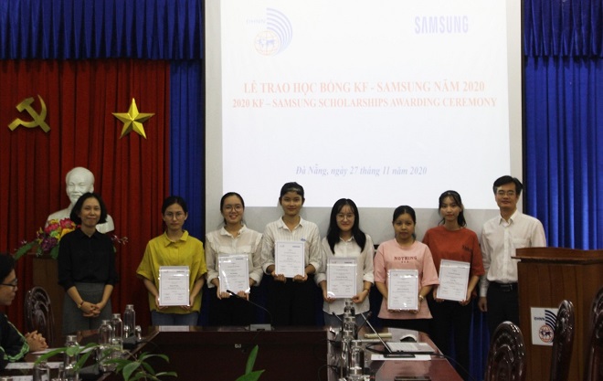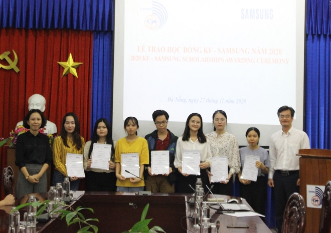Chiều ngày 27/11/2020, Trường Đại học Ngoại ngữ - ĐHĐN đã phối hợp với Quỹ học bổng KF-Samsung trao 20 suất học bổng, mỗi suất trị giá 250 USD cho 14 sinh viên có thành tích học tập xuất sắc và 6 sinh viên có hoàn cảnh gia đình khó khăn thuộc ngành Ngôn ngữ Hàn quốc, Khoa Tiếng Nhật - Hàn - Thái, Trường Đại học Ngoại ngữ - ĐHĐN.