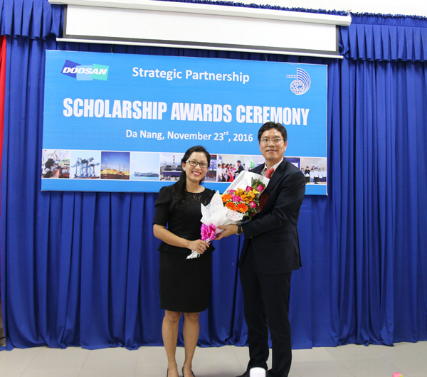 Chiều ngày 23/11/2016, 20 sinh viên xuất sắc ngành Tiếng Hàn thuộc Khoa Nhật-Hàn-Thái, Trường Đại học Ngoại ngữ - Đà học Đà Nẵng đã được nhận những suất học bổng trị giá 3.750 USD từ công ty TNHH Doosan Vina. Đây là chương trình trao học bổng thường niên của Doosan Vina và Doosan Yonkang cho sinh viên tại các trường Đại học, Cao đẳng trong cả nước nhằm giúp các em có thêm khoản kinh phí để tiếp tục con đường học tập.