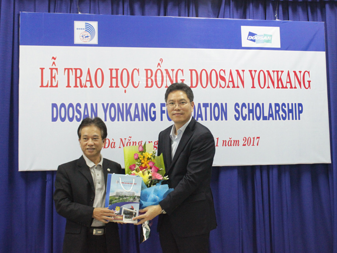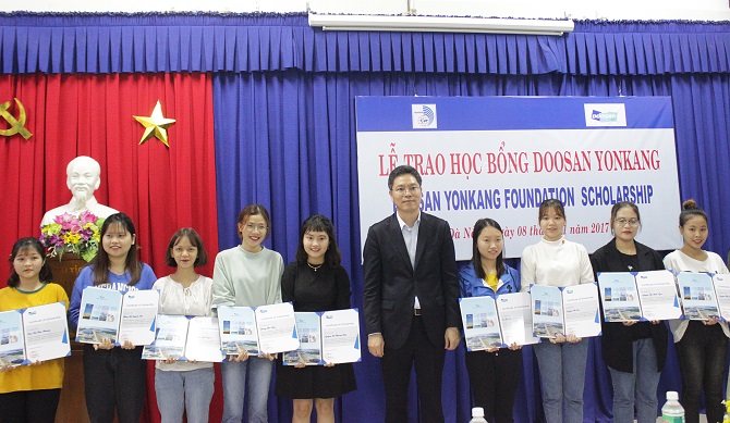 Chiều ngày 08/11/2017, 20 sinh viên xuất sắc ngành Tiếng Hàn thuộc Khoa Nhật-Hàn-Thái, Trường Đại học Ngoại ngữ - Đà học Đà Nẵng đã được nhận những suất học bổng trị giá 3.750 USD từ công ty TNHH Doosan Vina. Đây là chương trình trao học bổng thường niên của Doosan Vina và Doosan Yonkang cho sinh viên tại các trường Đại học, Cao đẳng trong cả nước nhằm giúp các em có thêm khoản kinh phí để tiếp tục con đường học tập.