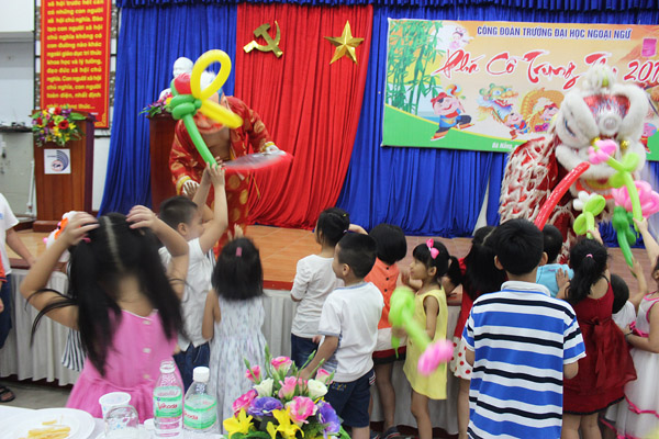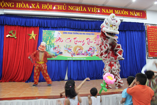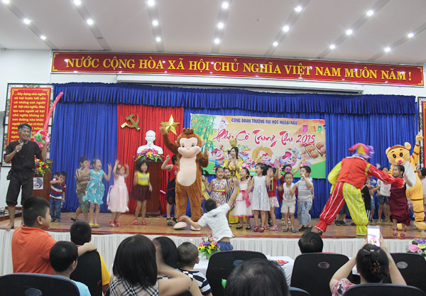 Rực rỡ sắc màu và đầy tiếng cười rộn rã trong “Đêm hội Trăng rằm” được tổ chức tối ngày 26/9/2015 tại Trường Đại học Ngoại ngữ chính là món quà đầy ý nghĩa của Công đoàn Trường Đại học Ngoại Ngữ - Đại học Đà Nẵng dành tặng cho các cháu thiếu nhi là con cán bộ, viên chức trong toàn trường.