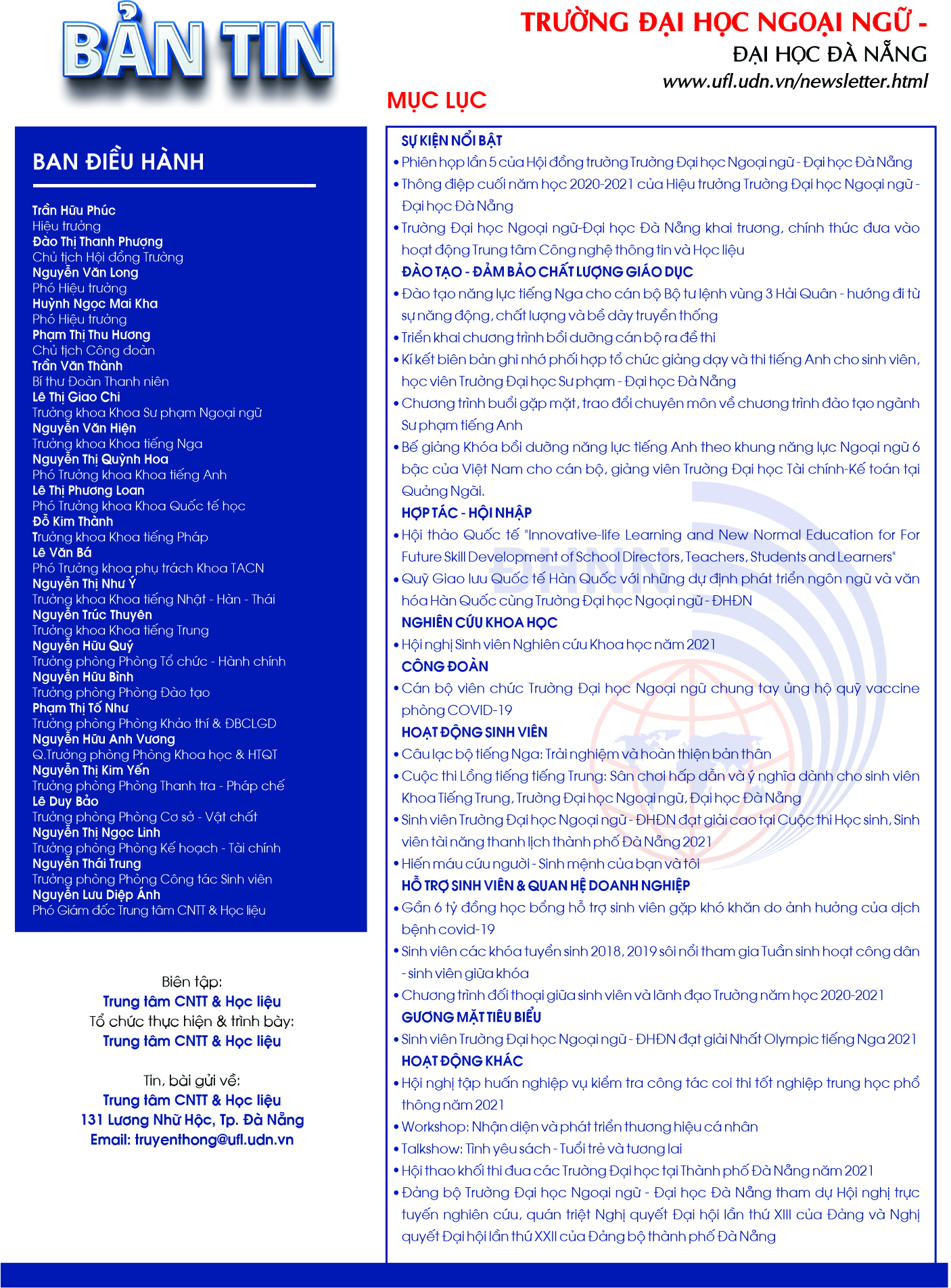 Thông điệp cuối năm học 2020-2021 của Hiệu trưởng Trường Đại học Ngoại ngữ - Đại học Đà Nẵng