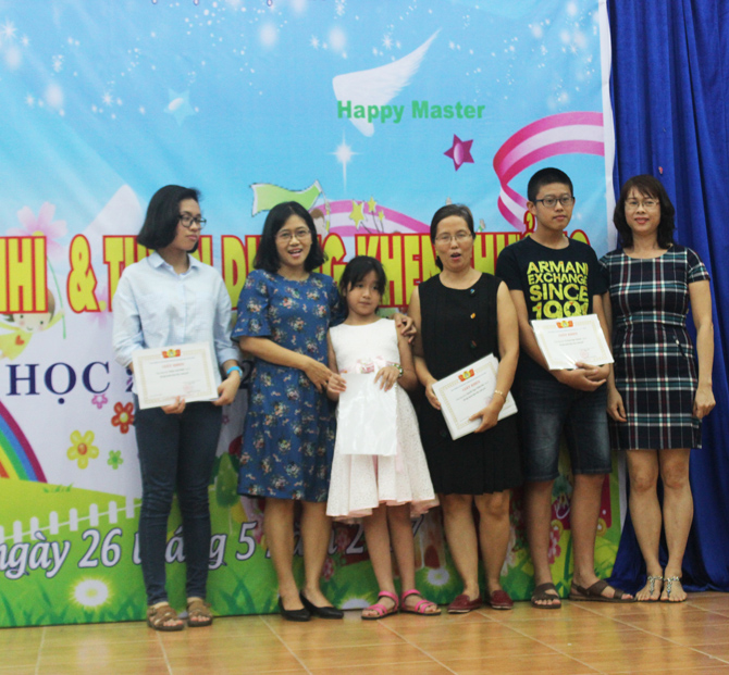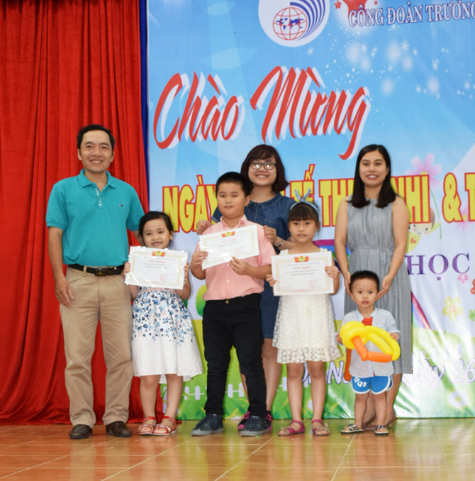 Dịp này, Công đoàn Nhà trường cũng đã tiến hành khen thưởng cho 201 cháu bé đạt thành tích xuất sắc trong học tập gồm: 138 học sinh giỏi cấp 1,2,3; 7 học sinh giỏi cấp Quốc gia, quốc tế; 20 học sinh giỏi cấp Thành phố, 17 học sinh giỏi cấp Quận 19 học sinh giỏi cấp Trường. Những món quà nhỏ nhưng mang ý nghĩa động viên, khích lệ các cháu phấn đấu hơn nữa trong năm học tiếp theo.
