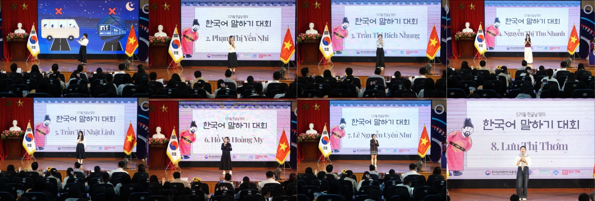 Cuộc thi năm nay quy tụ 20 thí sinh tiêu biểu, chia thành hai nhóm dựa trên trình độ tiếng Hàn. Với các chủ đề gần gũi và giàu cảm xúc như “Khoảnh khắc kết nối với Hàn Quốc”, “Phương pháp học tiếng Hàn” hay “Những câu chuyện thú vị khi học tiếng Hàn”, các bạn sinh viên đã mang đến những phần trình bày chân thật, lôi cuốn, thể hiện rõ niềm đam mê và hành trình học tập nghiêm túc của mình.