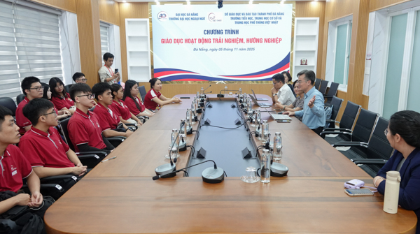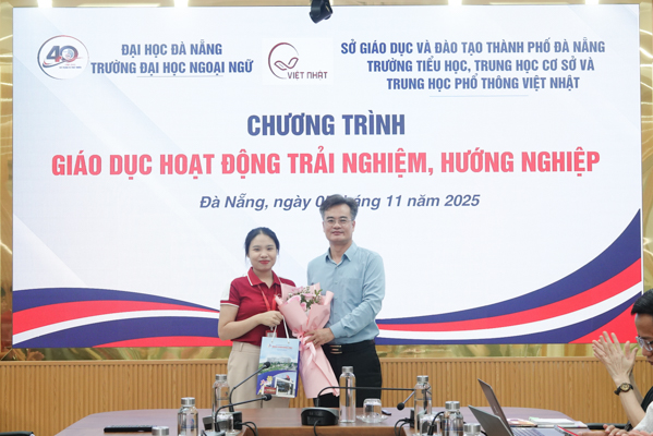 Ngày 04/11/2025, Trường Đại học Ngoại ngữ, Đại học Đà Nẵng đã chào đón đoàn giáo viên và học sinh khối 12 Trường Tiểu học, THCS & THPT Việt Nhật đến tham gia chương trình trải nghiệm hướng nghiệp đặc biệt mang tên “Cánh cửa Đại học: Vững bước đến tương lai”. Sự kiện là dịp ý nghĩa giúp học sinh tiếp cận gần hơn với môi trường đại học, mở rộng hiểu biết và định hướng rõ ràng hơn cho hành trình tương lai.
