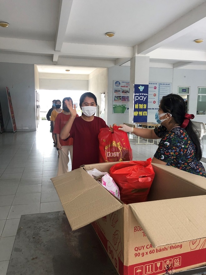 Nhằm hỗ trợ các sinh viên Nhà trường trong mùa dịch, chiều ngày 01/8/2020 và sáng ngày 03/8/2020, Đoàn Thanh niên - Hội Sinh viên Trường Đại học Ngoại ngữ đã trao 53 suất quà (200.000đ/suất) nhằm hỗ trợ, động viên sinh viên Nhà trường đang trọ tại kí túc xá DMC (đường Doãn Uẩn, Tp. Đà Nẵng) và kí túc xá Trường Đại học Sư phạm Kĩ thuật – Đại học Đà Nẵng. Các bạn sinh viên đều nghiêm túc đeo khẩu trang và thực hiện giãn cách theo quy định khi nhận hỗ trợ.
