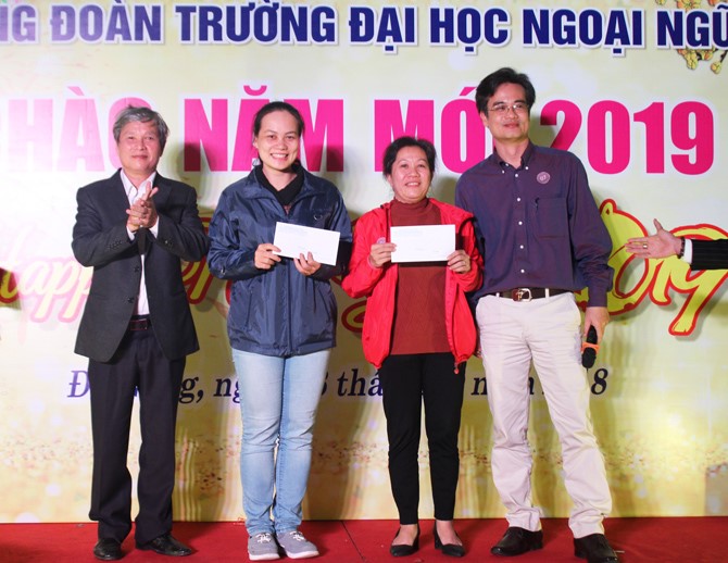 Trong không khí tươi vui, hối hả của những ngày cuối năm, tối ngày 28/12/2018, Công đoàn Trường Đại học Ngoại ngữ - Đại học Đà Nẵng tổ chức Chương trình giao lưu dạ hội “Chào năm mới 2019” để toàn thể cán bộ, viên chức Nhà trường có cơ hội được gặp gỡ nhân dịp cuối năm, cùng nhìn lại những thành quả đã đạt được trong năm 2018 và cùng hướng tới những mục tiêu mới trong năm 2019.